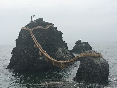 夫婦岩で有名な二見興玉神社に到着です。まずは双子岩