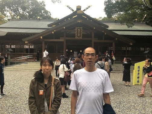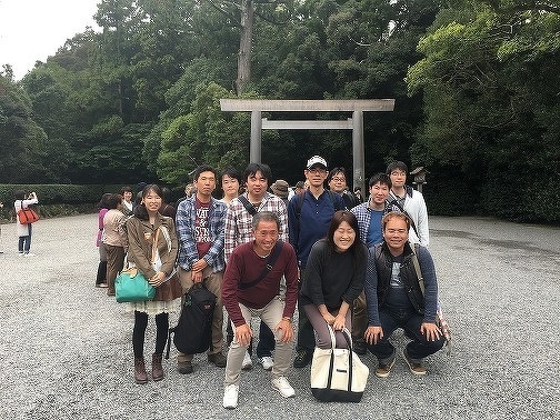 次は伊勢神宮に到着。鳥居の前に全員集合!
