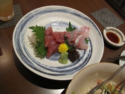 続いてお肉が・・・運ばれて来ず、刺身とお野菜でした。