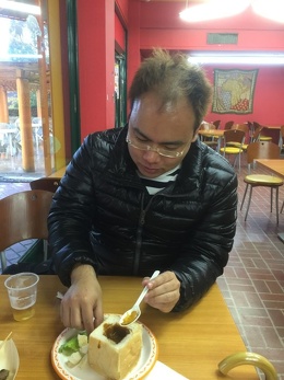パンをくり抜いてカレーを入れた南アフリカのファストフード「バニーチャオ」とのこと
