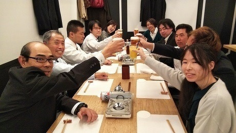 2018年 歓迎会&忘年会 昨年に続き、今年も歓迎会と忘年会の二本立てです。 今年はカフェ風の、おしゃれな場所で開催でした。 まず、初めは乾杯!! 色々な料理が出てきます。 メインはお鍋です。寒さ厳しいこの時期にはとても温まります。 二次会の会場はカラオケです。 そして、お楽しみのビンゴ大会が開催されます。 カラオケそっちのけで、抽選会が進められます!! 今年も個性あふれる様々な商品が当たりました!! とても楽しく参加できました。 幹事様、お疲れ様でした。
