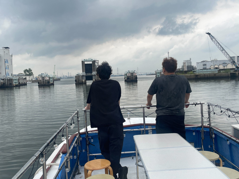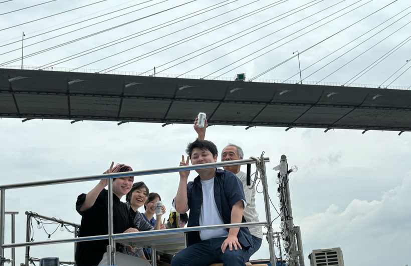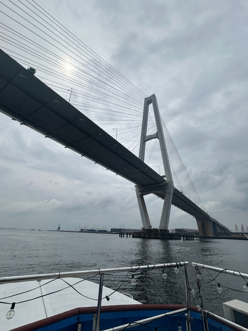 BBQを楽しんでいると、名港西大橋(通称:名港トリトン)が見えてきました