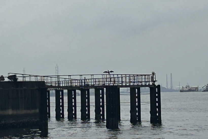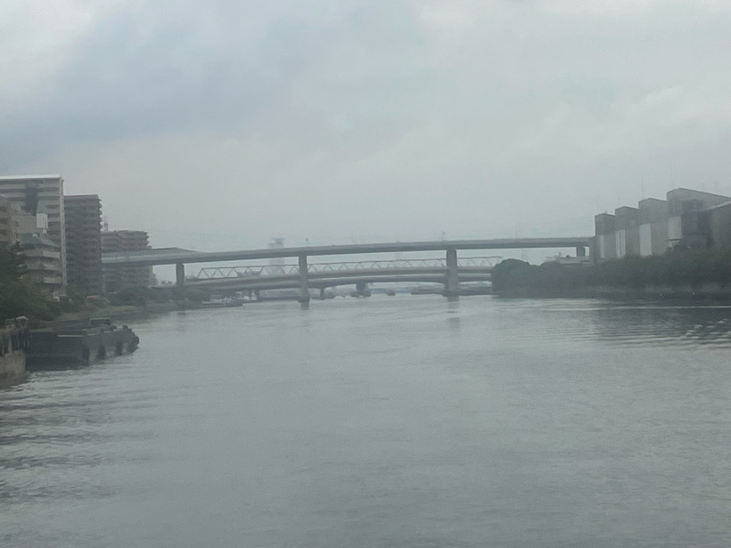 七里の渡し跡を出発し名港西大橋を通過、金城ふ頭で引き返し