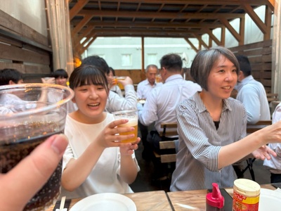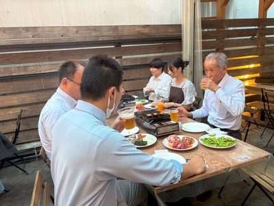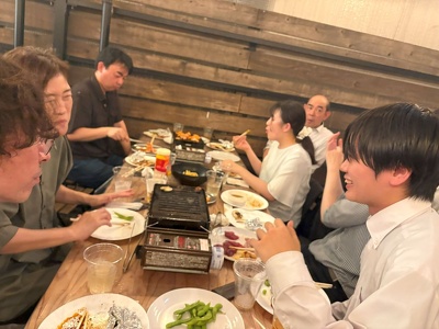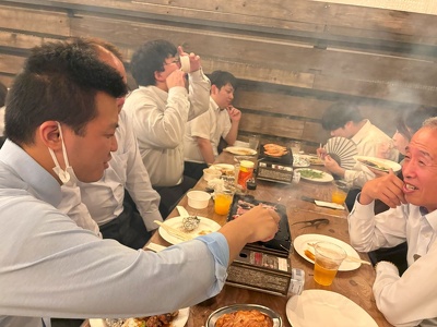 2025年07月 焼肉会 今年も恒例の焼肉会を行いました。 乾杯!! 今回はBBQ! お肉以外にも海鮮料理もあります。 そして上手に焼いていきます。 定番の「枝豆」や「フライドポテト」などもあります。 おいしいお肉を食べて、会話も弾みます。 最後に、デザートとしてアイスキャンディを頂きました。 【締めの言葉】で終了です。 幹事さん、お疲れさまでした。